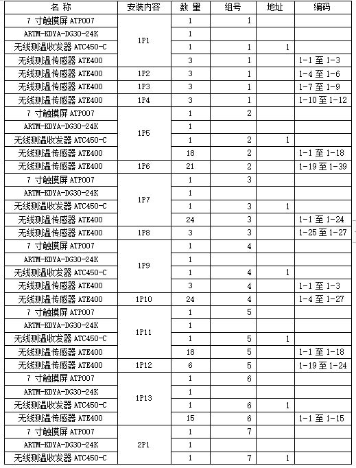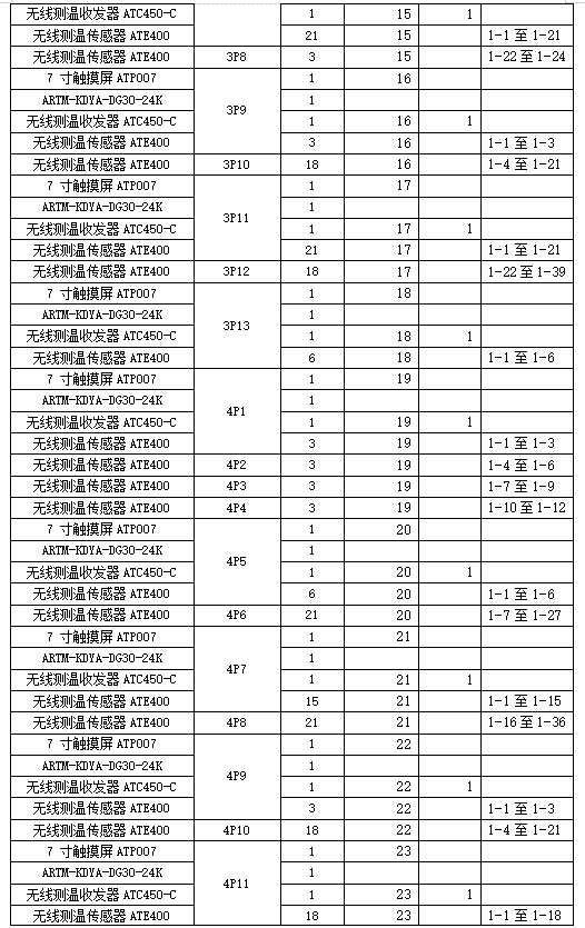 本杭州蕭山國際機場三期擴建工程項目使用無線無源測溫傳感器共計12366只,無線測溫收發(fā)器共計471只,電源模塊共計471只,觸摸屏共計471只。詳細配置方案和安裝情況如下表。