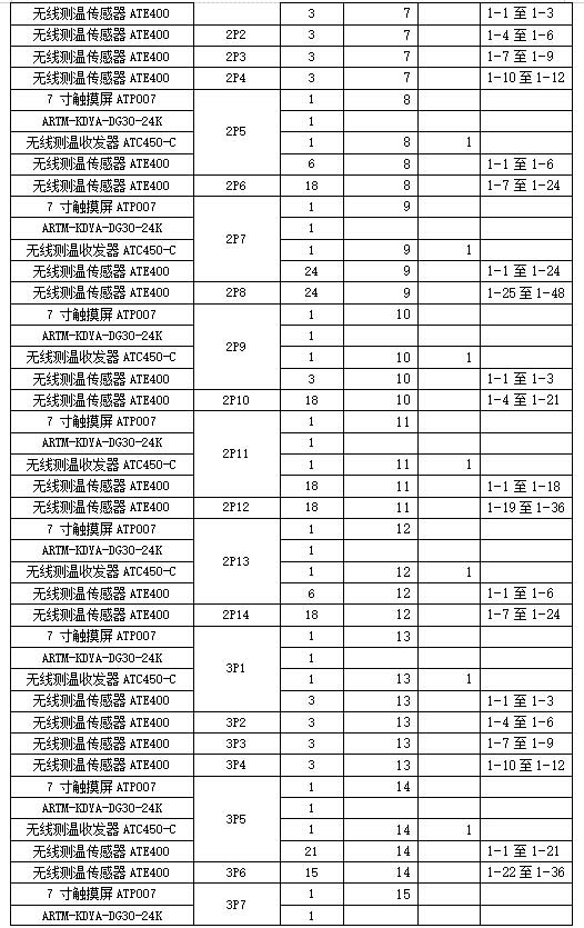無線測溫產(chǎn)品明細:(以航站樓C1低壓電柜為例)