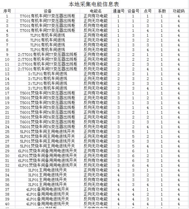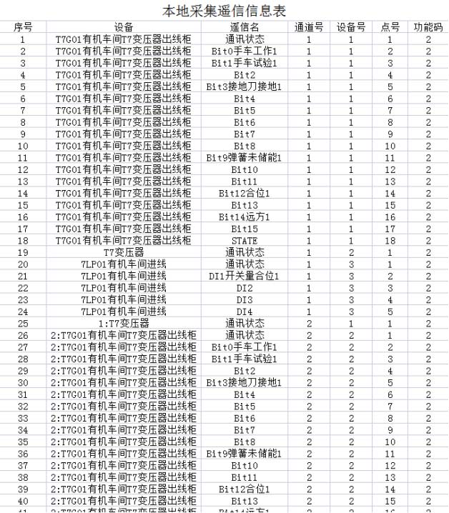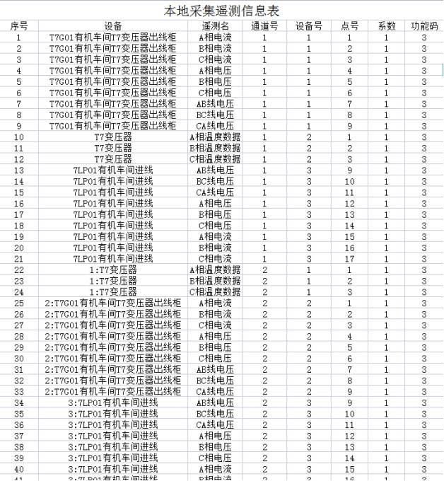 變電站綜合自動(dòng)化系統(tǒng)需采集設(shè)備數(shù)量共計(jì)34臺(tái),本地設(shè)備根據(jù)數(shù)據(jù)類型主要分為遙測(cè)、遙信、電能三類數(shù)據(jù),部分?jǐn)?shù)據(jù)展示如下: