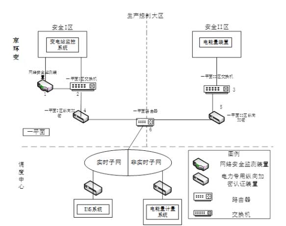 在通信室配置一面通訊屏、一面調(diào)度數(shù)據(jù)網(wǎng)屏,通訊屏配置1套155M光傳輸設(shè)備,內(nèi)配1塊155M單光口板,配置2臺(tái)PCM接入設(shè)備(1臺(tái)安裝在35kV靜脈變,一臺(tái)安裝在安慶市調(diào)度),通過專用通道點(diǎn)對(duì)點(diǎn)方式實(shí)現(xiàn)變電站與調(diào)度端通訊。調(diào)度數(shù)據(jù)網(wǎng)屏配置數(shù)據(jù)1臺(tái)路由器、2臺(tái)交換機(jī)、2臺(tái)縱向加密裝置、1臺(tái)網(wǎng)絡(luò)安全監(jiān)測(cè)裝置、1臺(tái)廠站采集終端,廠站采集終端實(shí)現(xiàn)站內(nèi)的總電能計(jì)量與所用變計(jì)量。