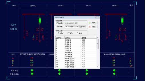 Acrel-1000變電站綜合自動(dòng)化系統(tǒng)人機(jī)界面友好,能夠以配電一次圖的形式直觀顯示配電線路的運(yùn)行狀態(tài),實(shí)時(shí)監(jiān)測(cè)各回路電壓、電流、功率、功率因數(shù)等電參數(shù)信息,動(dòng)態(tài)監(jiān)視各配電回路斷路器、隔離開關(guān)、地刀等合、分閘狀態(tài)及有關(guān)故障、告警等信號(hào)。其中,10kV配電系統(tǒng)中監(jiān)測(cè)的開關(guān)量主要有:斷路器分、合閘信號(hào),手車工作、試驗(yàn)位置信號(hào),遠(yuǎn)方/就地切換位置信號(hào)、彈簧儲(chǔ)能狀態(tài)信號(hào)、接地刀合分信號(hào)、變壓器超溫跳閘信號(hào)、高溫報(bào)警信號(hào),保護(hù)跳閘信號(hào)和事故預(yù)告信。