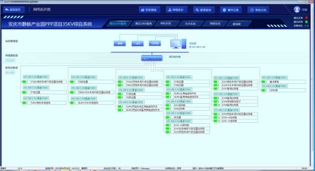 系統(tǒng)支持實(shí)時(shí)監(jiān)視接入系統(tǒng)的各設(shè)備的通信狀態(tài),能夠完整的顯示整個(gè)系統(tǒng)網(wǎng)絡(luò)結(jié)構(gòu);可在線診斷設(shè)備通信狀態(tài),發(fā)生網(wǎng)絡(luò)異常時(shí)能自動(dòng)在界面上顯示故障設(shè)備或元件及其故障部位。