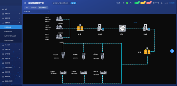 項目需要監測空壓機子系統,污水處理子系統,軋機冷卻水循環系統,空調冷熱水子系統。展示主要設備的日用能,月用能,關鍵設備的電參量,溫度,頻率等數據。