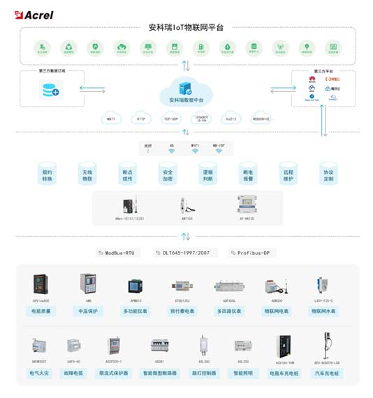 Acrel-EIoT能源物聯網云平臺是一套基于安科瑞物聯網數據中臺,建立了上下行數據標準,為互聯網用戶提供能源物聯網數據服務的平臺。用戶僅需購買安科瑞物聯網傳感器和互感器等設備,自行安裝后無論是物聯網儀表直傳還是通過網關上傳,都可以使用手機掃碼即可得到所需的行業數據服務。