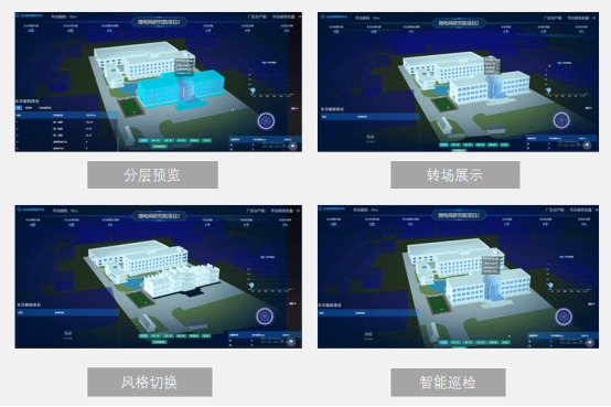 3D可視化技術通過虛擬仿真實現多維度可視化,為客戶提供數字化服務,助力企業能源經濟雙向管理,提升能源管理水平。可以實現的功能主要有:各區域信息實時同步;全局掌握各區域能源消耗情況;可視化監視設備運行狀態;智能巡檢,自動分析巡檢路徑上的設備運行、電能質量、電氣安全、用能異常等情況,并記錄巡檢結果。