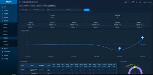 顯示充電站地理位置、站點信息及充電設備狀態,包括充電中、空閑、故障、離線等。統計充電站運營數據和充電數據,包括充電金額、充電度數、充電次數、充電時長,并進行今日、昨日、本月趨勢分析和對比。