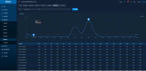 可查看指定時段充電站和充電樁的用電量,顯示對應的能耗趨勢圖并進行同環比分析。