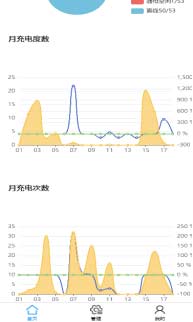 可按日、月、季度、年查看充電次數、充電時長、充電金額,同時顯示對應的曲線圖。