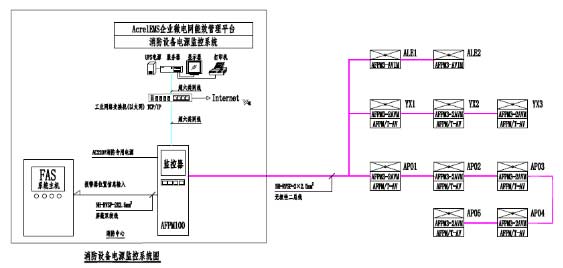 在本項目的設計中,按需選用了消防設備電源監控器(主機)、電壓傳感器、電壓/ 電流傳感器。采用二總線通訊方式,布線方便。