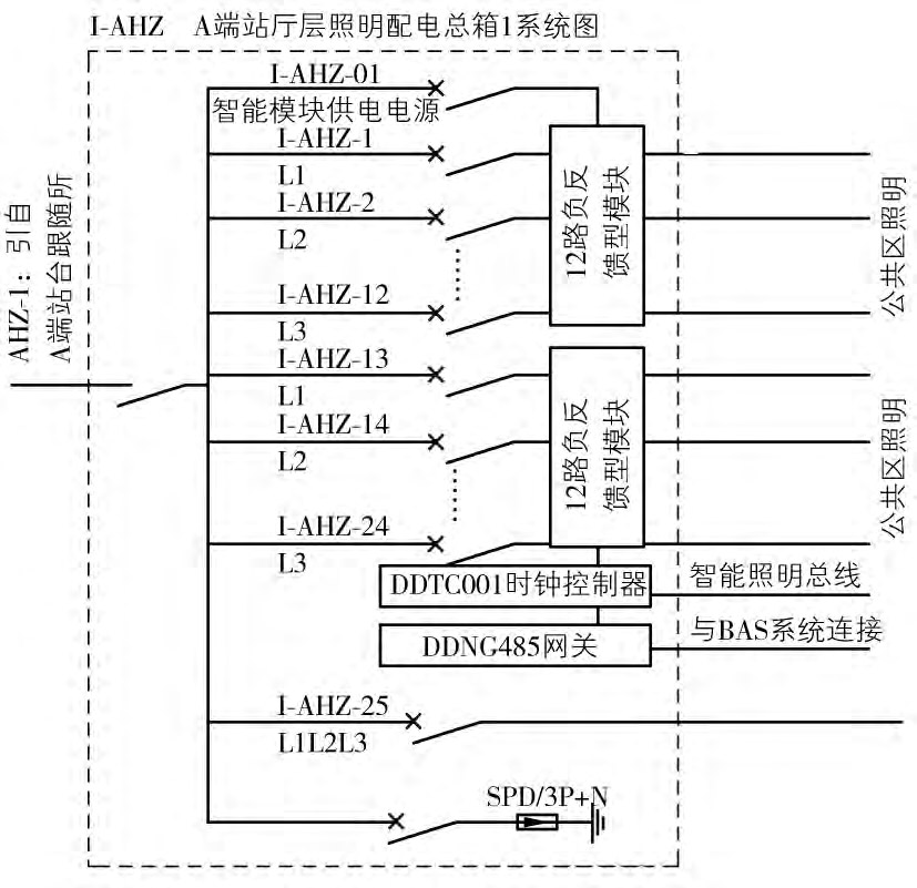 圖1某標(biāo)準(zhǔn)地鐵站照明配電總箱系統(tǒng)圖