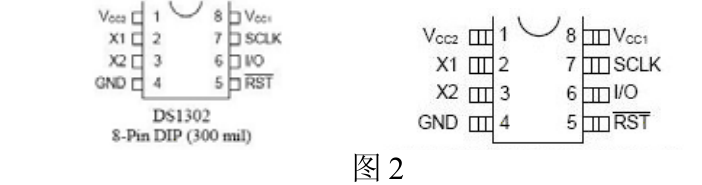 DS1302 的引腳功能排列及描述如下圖所示