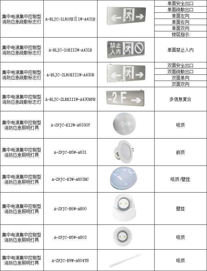 消防應急照明與疏散指示系統(tǒng)由控制器(主機)、集中電源和燈具(疏散指示燈具、應急照明燈具)等幾部分組成。因本項目產(chǎn)品過多,此處只介紹主要產(chǎn)品。