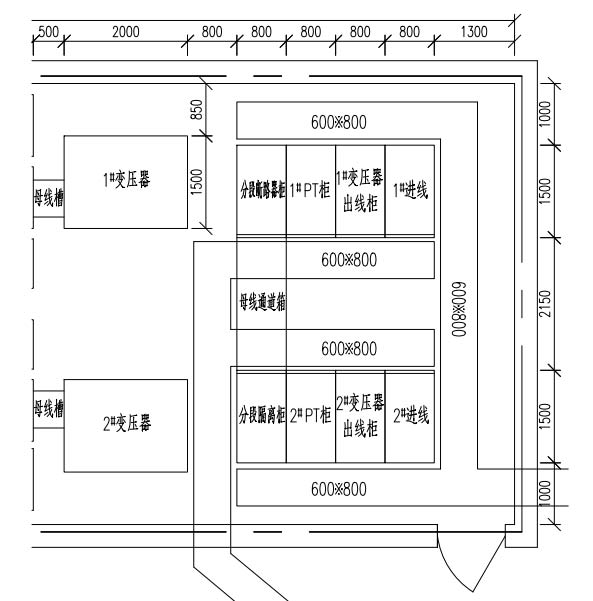 本工程為中國移動通信集團內(nèi)蒙古有限公司錫林郭勒分公司10kV供配電工程項目,10kV系統(tǒng)為單母線分段接線形式,兩進線,母聯(lián)開關(guān)之間設(shè)置電氣連鎖,電纜下進線上出線,變壓器采用真空式斷路器,采用戶內(nèi)金屬鎧裝移開式高壓開關(guān)柜,主變進線柜、分段柜、出線柜斷路器額定電流選用1250A,額定開斷電流選用25kA。10kV電壓互感器選用戶內(nèi)環(huán)氧樹脂澆注式,全封閉、全工況電壓互感器。變電所平面布局圖如下: