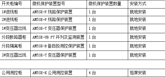 整個配電室所設(shè)微機保護型號與數(shù)量如下:
