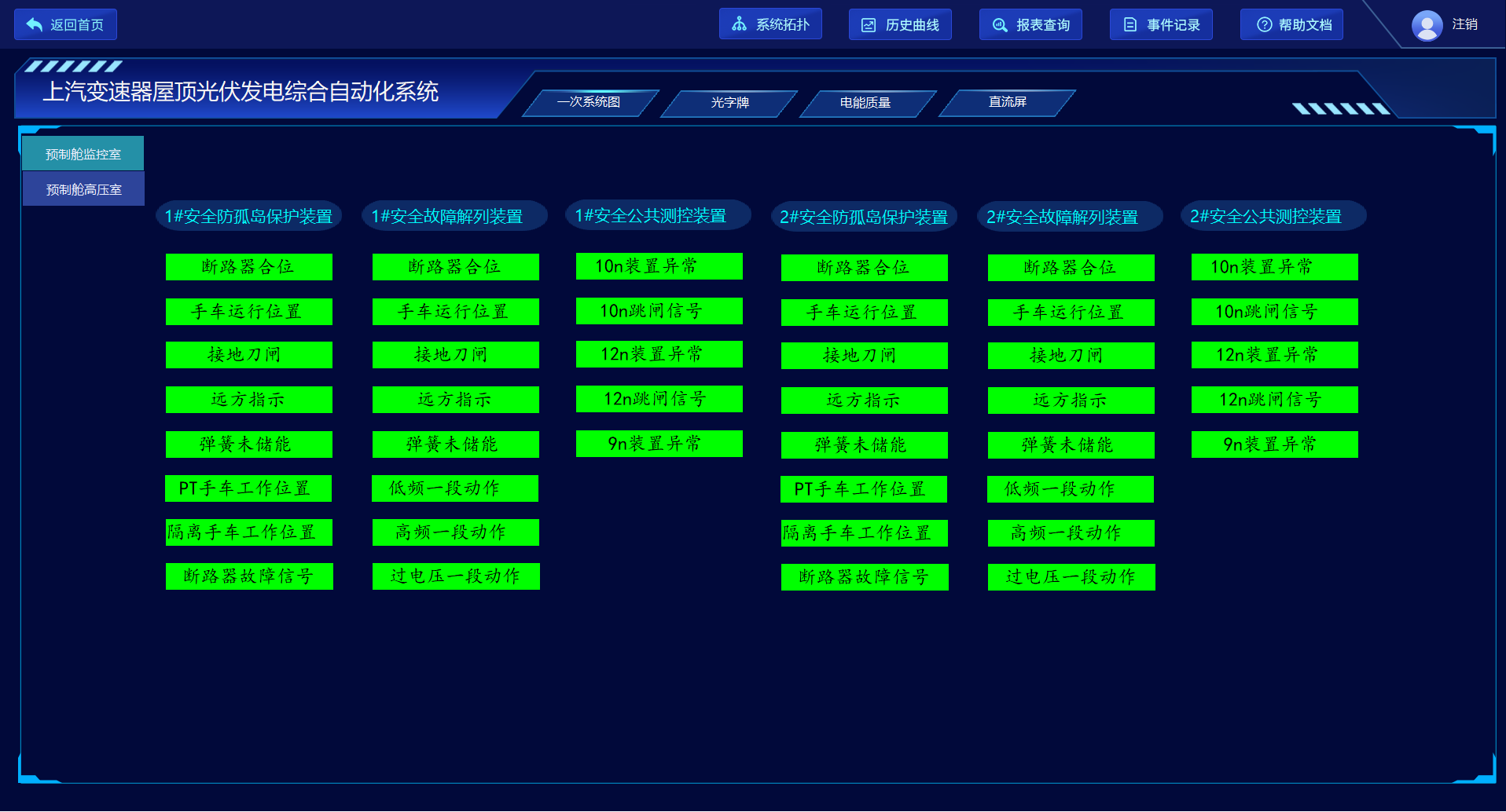 光字牌可以顯示電力系統中設備的運行狀態和系統的重要信息,為運行人員提供清晰的狀態指示和警示信號,包括二次設備的異常、跳閘信號,開關柜斷路器的分合位、手車位置、接地刀閘等信號。