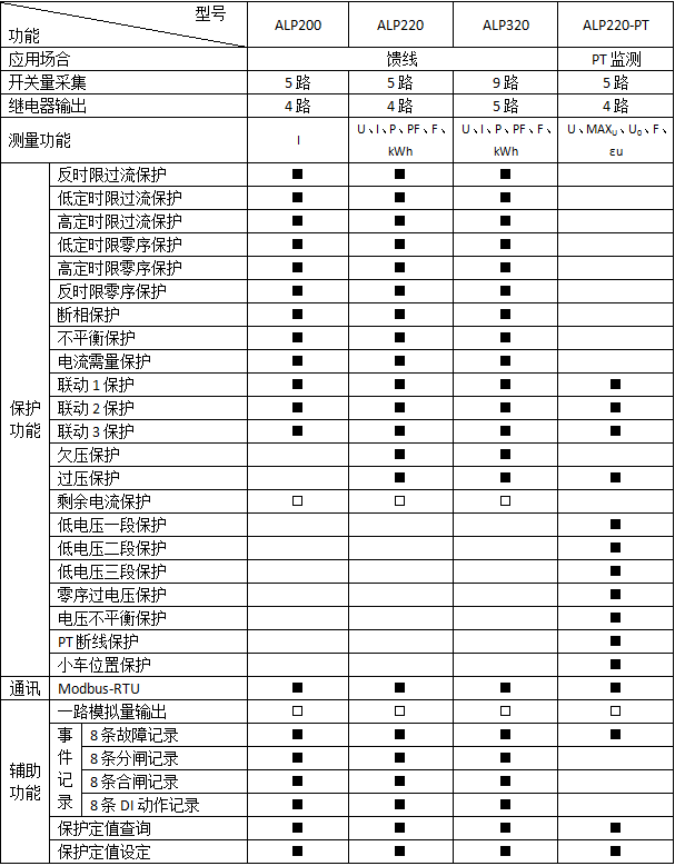 ALP系列線路保護(hù)器集保護(hù)、測量、控制、總線通訊為一體,同時提供了遠(yuǎn)程自動控制、現(xiàn)場直接控制、面板指示、信號報警、操作記錄、跳閘報警記錄及開關(guān)量記錄等功能。