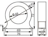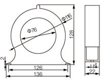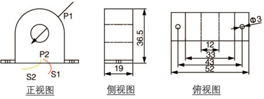 注:一次電流從P1面進(jìn),P2面(灌膠面)出;二次引線黃色為S2,紅色為S1,引線長150mm,引線截面積0.22m2