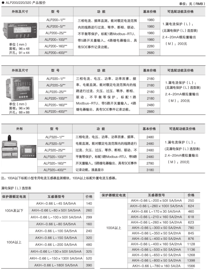 技術(shù)要求:輸入電壓AC 220V;工作頻率50Hz;電流變比200A/5A;漏電保護(hù)KB2模塊;準(zhǔn)確級0.5。