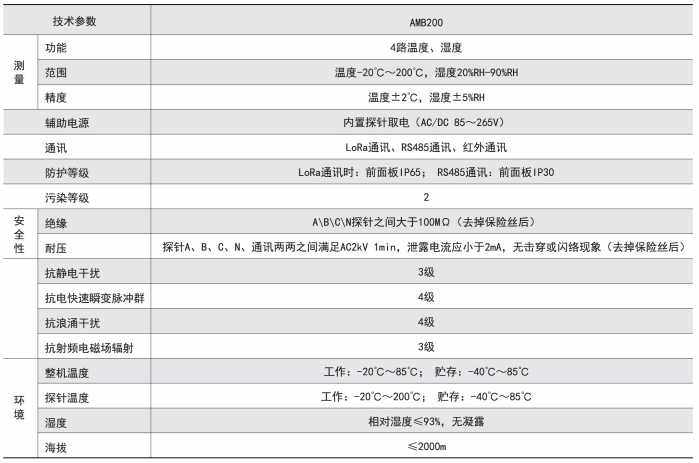 AMB200 母線接頭測溫裝置具有以下功能: