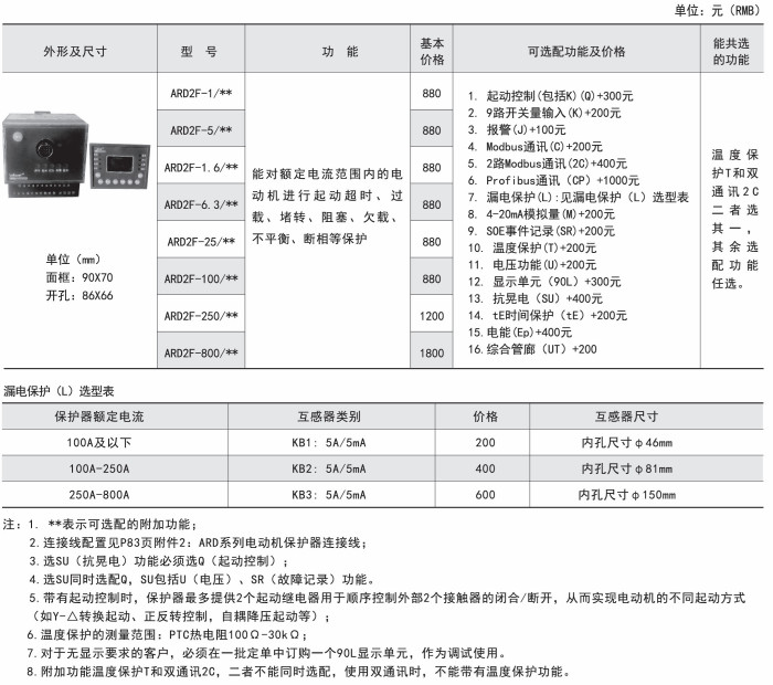 ARD2、ARD2F、ARD3配電流互感器,但1A/5A規(guī)格,不配一次互感器。