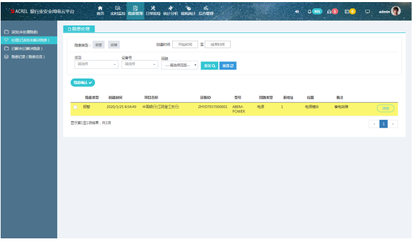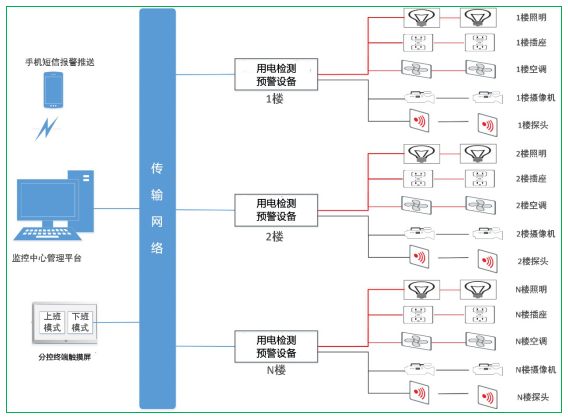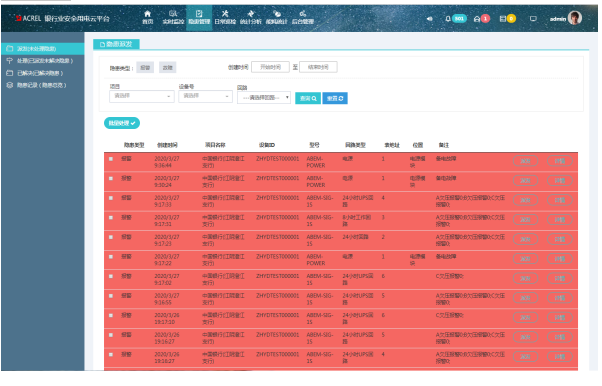 銀行用電安全云平臺(tái)通過(guò)采集設(shè)備的數(shù)據(jù),能夠?qū)ΜF(xiàn)場(chǎng)的電壓、電流、溫度、電弧等進(jìn)行實(shí)時(shí)監(jiān)測(cè)并進(jìn)行數(shù)據(jù)分析,并對(duì)被保護(hù)線路的過(guò)壓、過(guò)載、過(guò)流、過(guò)溫、欠壓、打火、缺相、設(shè)備不在線等情況進(jìn)行預(yù)警,系統(tǒng)在發(fā)現(xiàn)電氣火災(zāi)預(yù)警時(shí),信息可多種途徑及時(shí)通知相關(guān)單位處理,確保用電線路系統(tǒng)安全。