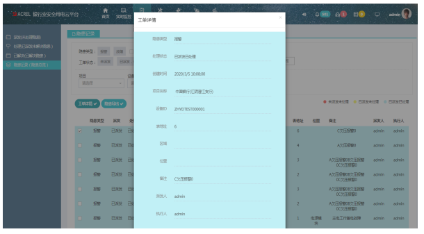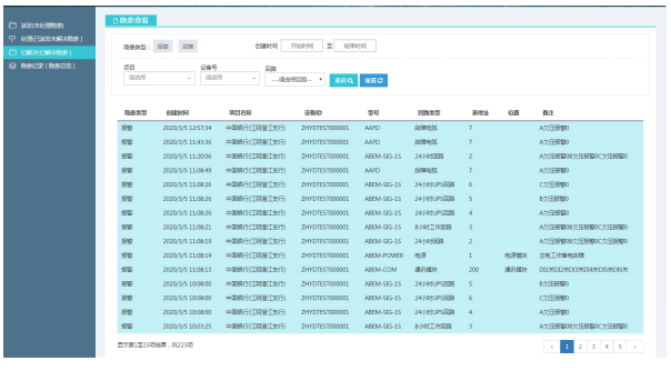 隱患界面 我們從報(bào)警查詢,分派,處理,查看過(guò)程。形成一個(gè)閉環(huán),方便客戶追蹤整個(gè)流程。隱患巡查提供多種方式查看未進(jìn)行處理的隱患。隱患派發(fā)針對(duì)未處理的隱患,對(duì)隱患派發(fā)到個(gè)人,設(shè)置處理完成節(jié)點(diǎn),及時(shí)通知人員進(jìn)行處理。隱患處理界面,收到任務(wù)的人員能對(duì)這個(gè)隱患進(jìn)行處理,包括寫明原因和上傳現(xiàn)場(chǎng)圖片等。隱患記錄界面,能夠查看處于各個(gè)節(jié)點(diǎn)的隱患記錄,把握整個(gè)平臺(tái)的隱患概況。