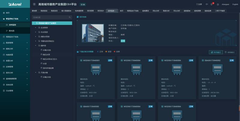 針對智慧用電部分,系統提供能耗分析功能,按回路可查詢日、月、年的能耗報表和曲線。