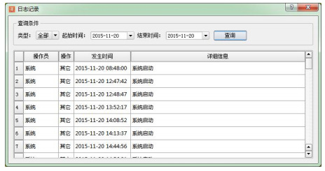 日志信息如圖13所示,可根據(jù)日志類型、起始時(shí)間、結(jié)束時(shí)間查詢?cè)摃r(shí)間段內(nèi)類型的系統(tǒng)日志。其中,日志類型可選擇啟動(dòng)、故障或者其他。日志內(nèi)容包括操作設(shè)備名稱、操作類型、記錄時(shí)間以及詳細(xì)的事件說明,幫助了解系統(tǒng)運(yùn)行情況。