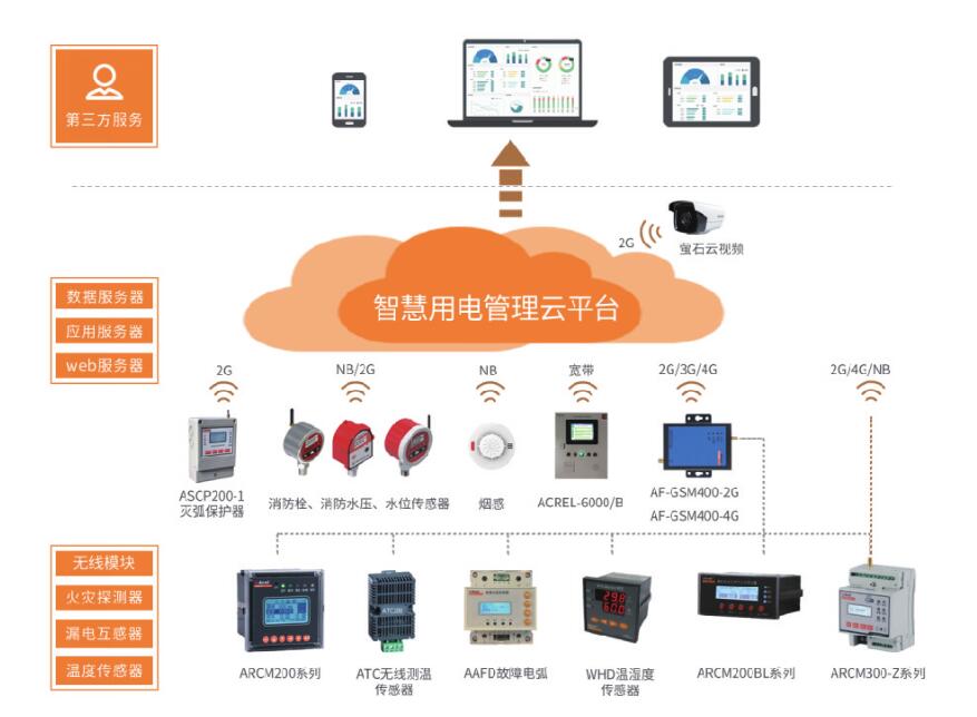 安科瑞指導用戶完成如電氣火災探測器、剩余電流互感器、溫度傳感器、無線模塊等的安裝和調試,用戶將數據上傳至安科瑞智慧用電監控預警平臺,委托安科瑞管理,按規定/約定收取軟件基礎費用和托管費用。