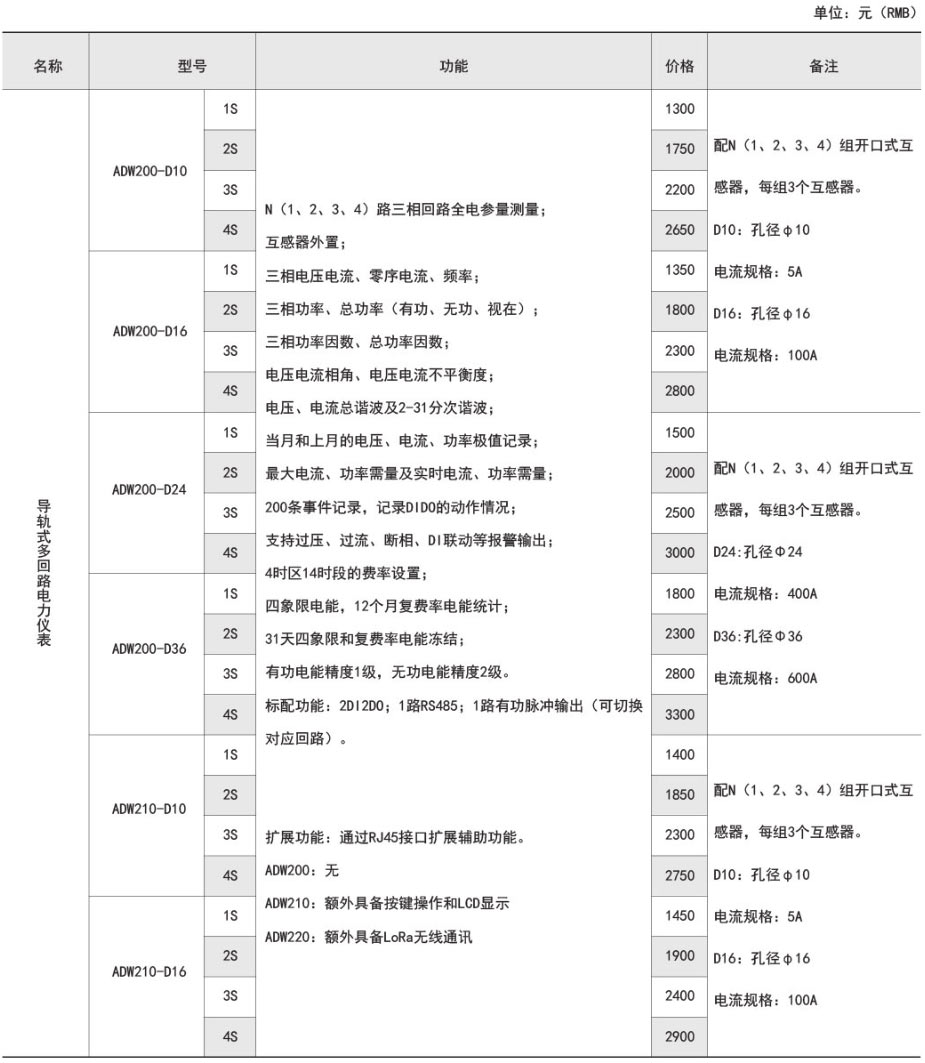 ADW2xx系列導軌式多回路電力儀表方便用戶進行用電監測、集抄和管理。可靈活安裝于配電箱內,實現對不同區域和不同負荷的分項電能計量,統計和分析。
